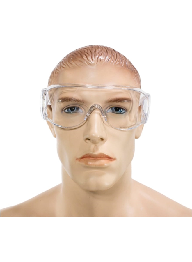 Панорамные линзы с покрытием от запотевания изнутри и от царапин снаружи. Три уровня защиты: фронтальный, верхний, боковой. Дужки без регулировки, заушники широкие.