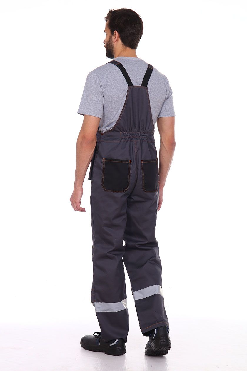 ➠ Полукомбинезон с центральной застежкой на молнию, на передних половинках накладные карманы, навесные карманы-портфели, усиления в области коленей с карманом для амортизационных прокладок. Многофункциональный боковой карман.